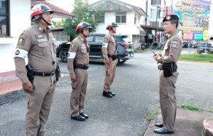 ร.ต.อ.ทรงศักดิ์ ไหมแก้ว รอง สวป.ฯ ปฏิบัติหน้าที่ หน.สายตรวจจราจร เรียกแถวสายตรวจจราจร หน้าศูนย์ปฏิบัติการจราจรแม่ขรี เพื่อบรมชี้แจงข้อราชการ ตรวจสอบความพร้อมเกี่ยวกับการแต่งกาย อาวุธปืน เครื่องมือ เครื่องใช้ ยานพาหนะ รวมทั้งเทคนิค ยุทธวิธี และการป้องกันตนเอง ก่อนปล่อยแถวออก ว.4 ประจำจุดเพื่อจัดระเบียบการจอดรถ-หยุดรถและอำนวยความสะดวกด้านการจราจร เพื่อป้องกันอุบัติเหตุบนทางถนนและการป้องกันการแข่งรถในทางตามนโนบายของรัฐบาล ในเขตพื้นที่รับผิดชอบ