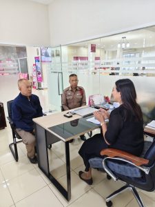 พ.ต.ท.เกียรติคุณ วังเพ็ชร์ รอง ผกก.ป.ฯ ได้มาตรวจเยี่ยม ธนาคารออมสิน พบผู้จัดการธนาคาร และ ร.ต.ท.ฉลาด พลเพชร รอง.สว.(ป) สภ.ตะโหมด ประจำธนาคารออมสิน