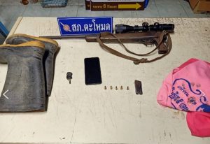 1.อาวุธปืนไรเฟิลลำกล้องสำหรับใช้กับกระสุนขนาด .22 นิ้ว ขนาดความยาวลำกล้องประมาณ 55 ซม. ระบบกึ่งอัตโนมัติยี่ห้อเช็คโคสโลวาเกีย พานท้ายแบบยืดได้พร้อมติดกล้องช่วยเล็ง ความยาวตลอดตัวปืนประมาณ 70 ซม. จำนวน 1 กระบอก (ไม่ปรากฏหมายเลขทะเบียนที่ตัวปืน)