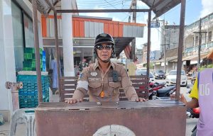 ร.ต.ท.สุทัศน์ ยั่งยืน รอง สว.จร. สภ.ตะโหมด (ตะโหมด 612) ปฎิบัติหน้าที่สายตรวจจราจร