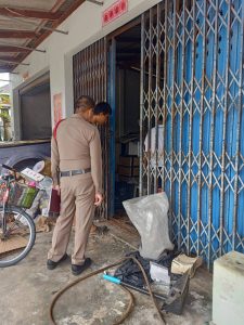 พร้อม จ.ส.ต.อภินันท์ มีภพ (ผช.พงส.)ฯ นักเรียนนายสิบตำรวจฝึกงาน ว.4 ตรวจที่เกิดเหตุลักทรัพย์ หม้อแบตเตอรี่